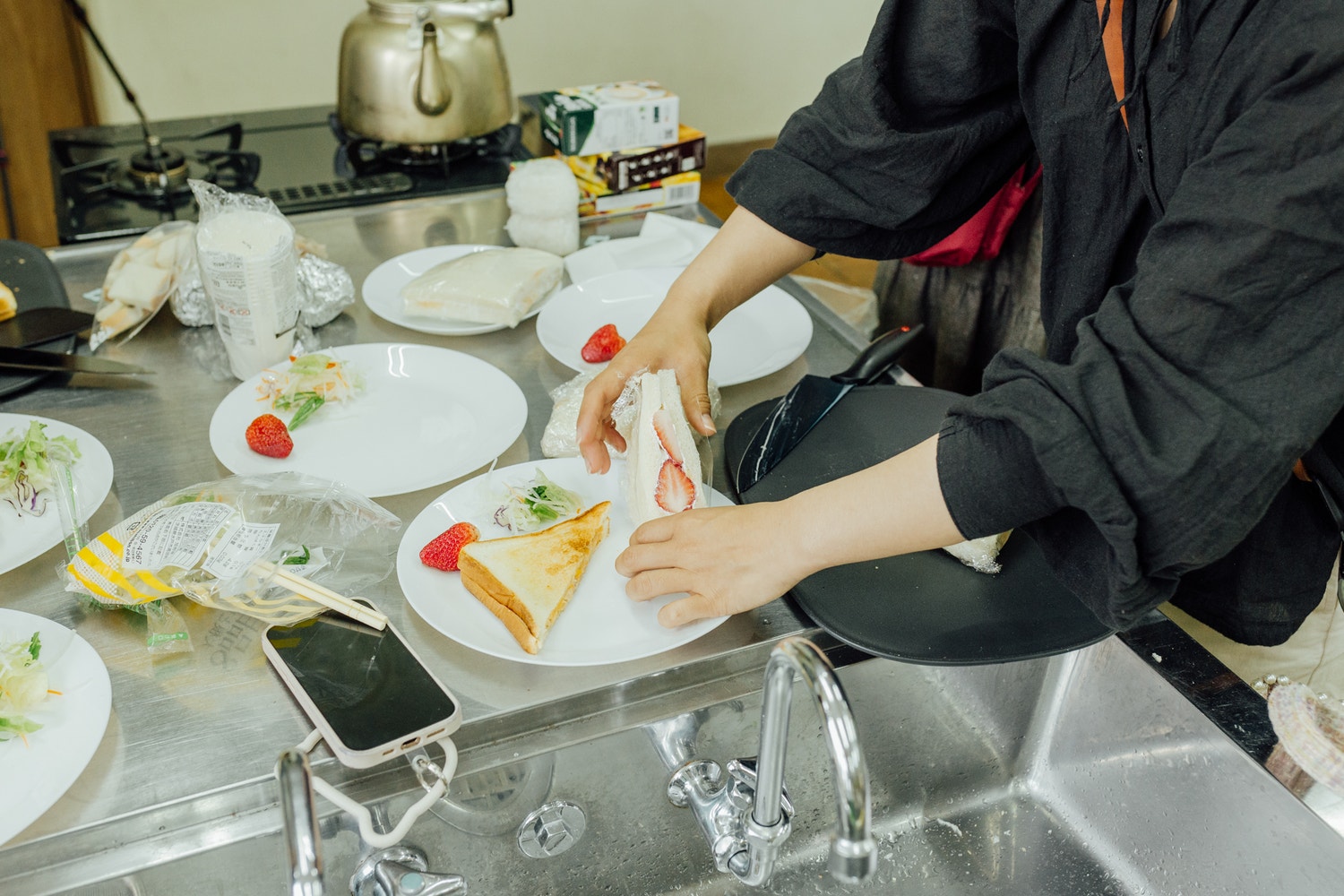 お誕生日が近いメンバーが二人もいた班では、映えるフルーツサンドとケーキの準備まで…!✨