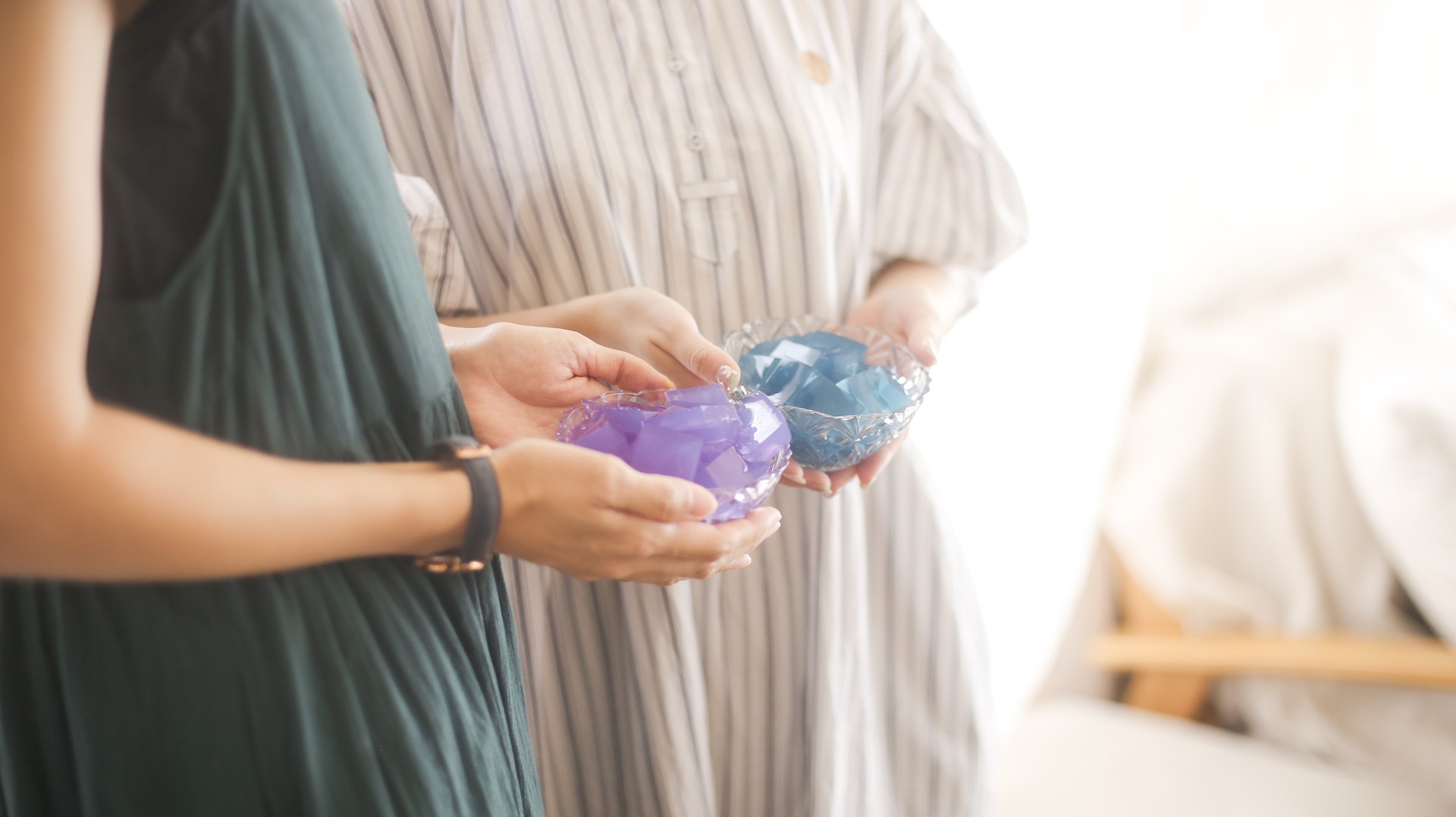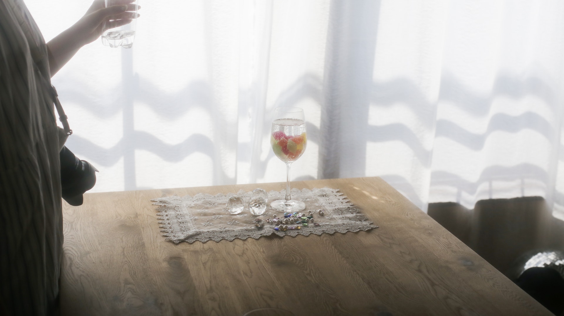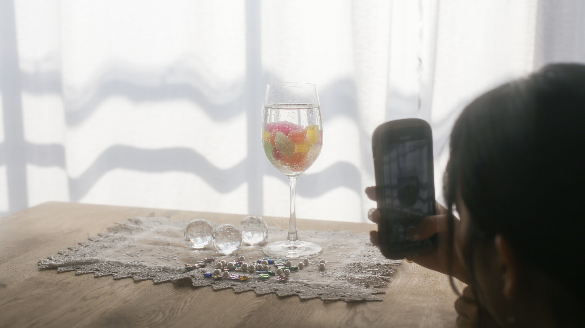 ゼリーソーダ、琥珀糖ソーダ、フルーツソーダが完成したタイミングで撮影タイムに。自由にセッティングしてもらいながら撮っていました! @さきとぅん さんが持ってきてくれた、キラキラストーンやテーブルクロスをセッティングしてくれて、より透明感ある雰囲気になっていました✨ 手持ち撮影など、@sami さんが指示出しもしてくれて撮りあっていました☺️