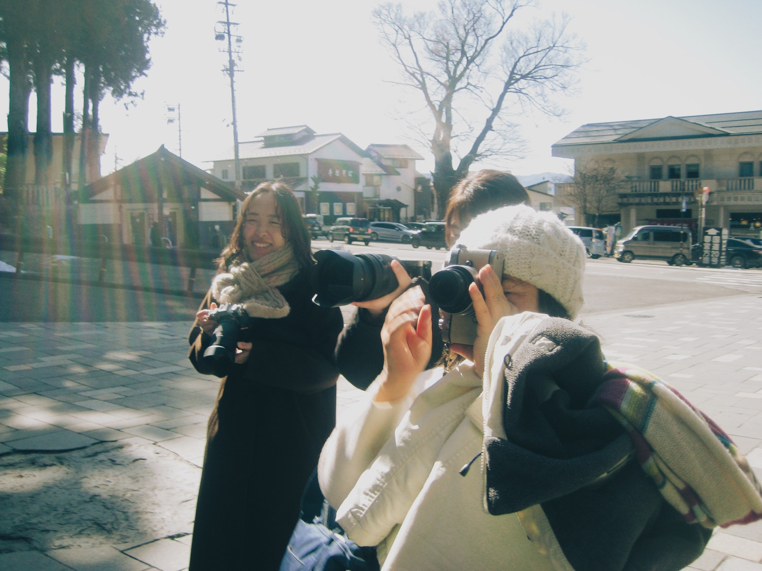 最初は緊張気味の私たち、でも諏訪大社について撮影を始めたら、すぐにほっこりワイワイムードに突入!本当、初対面なのに不思議ですよね。camellの撮影会には不思議なパワーがあると信じていますw