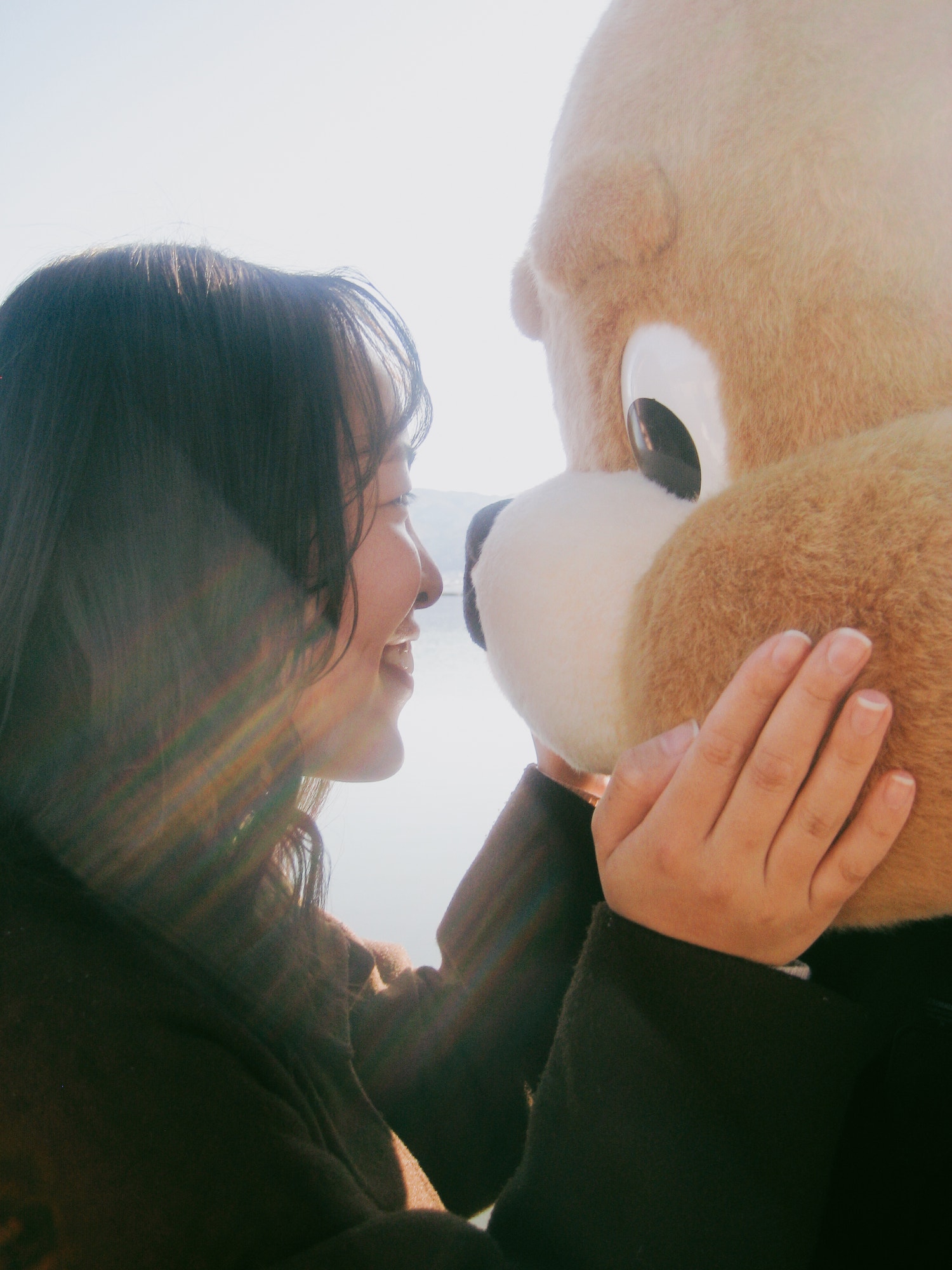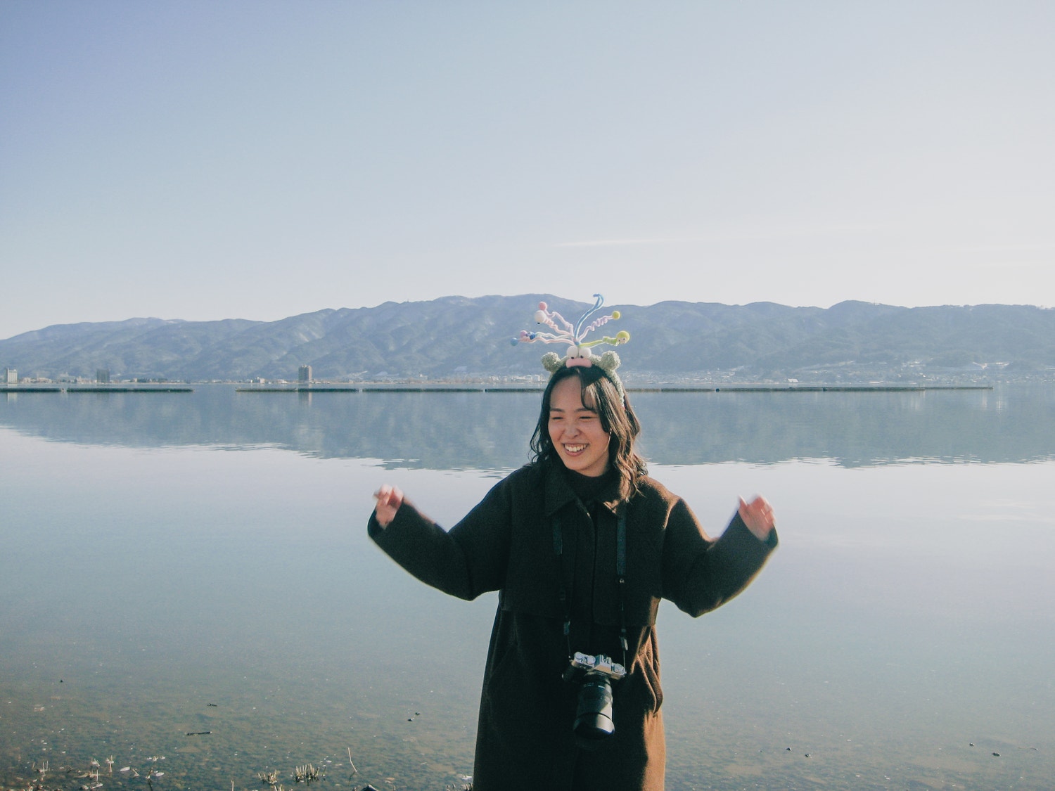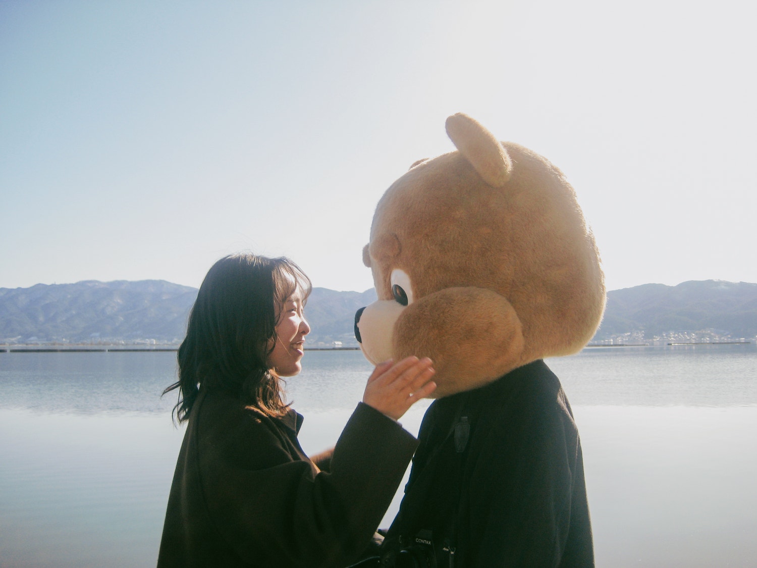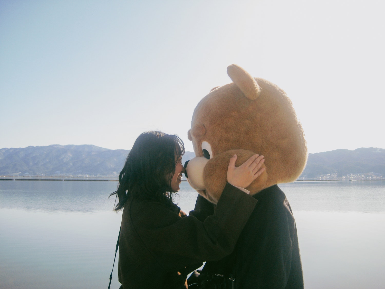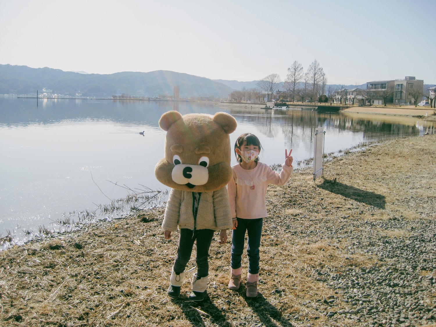 諏訪湖近隣の人たちは心が清い人が多いのか、まめるさんに集まってきてくれて「撮影していいですか?」と、まめるさんと記念撮影を楽しんでくれました(笑)