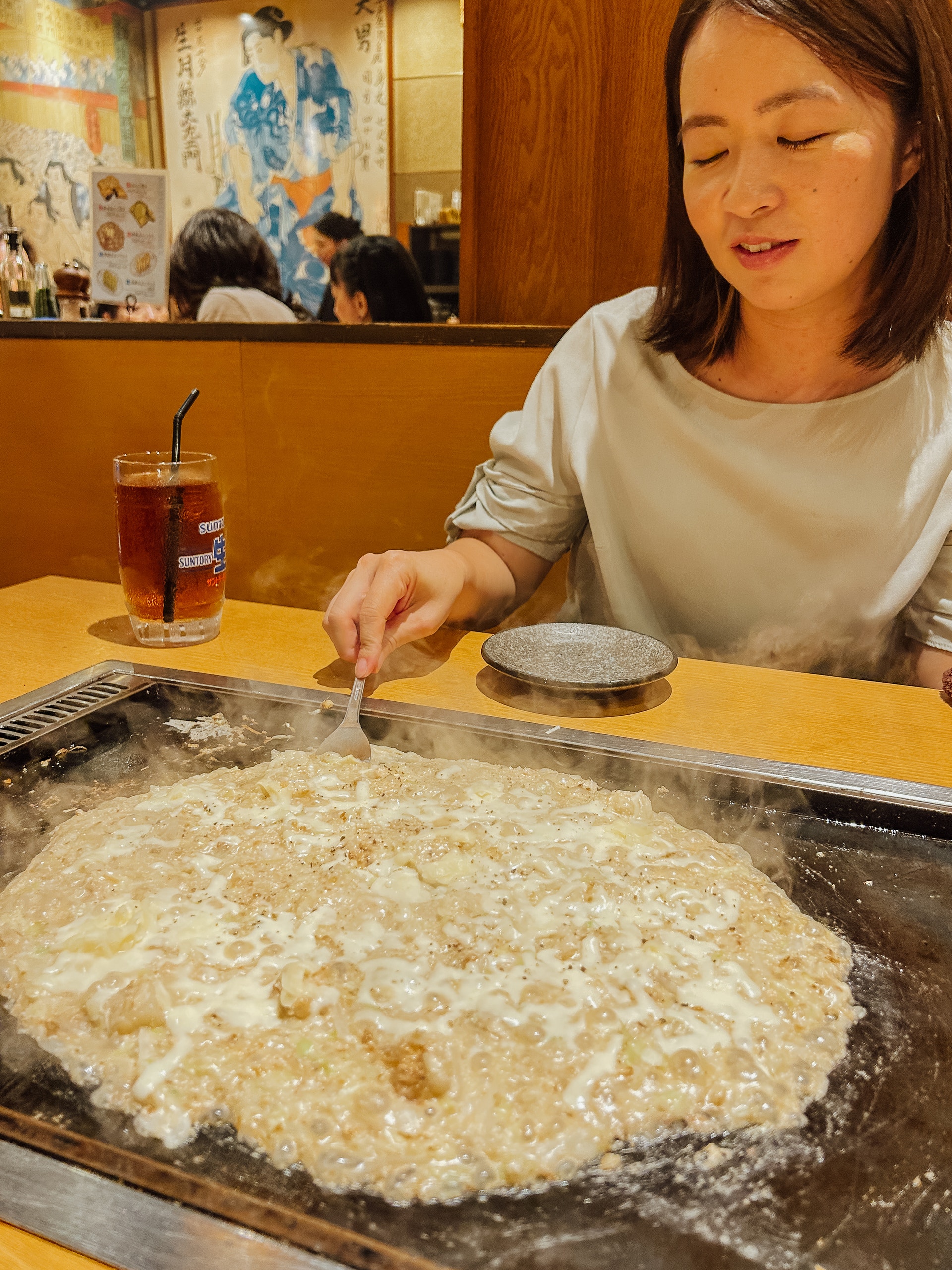 19:00〜20:30のクルーズだったため、船に乗る前に晩御飯を食べよう…!と両国駅すぐの江戸NORENの中にある「月島もんじゃ もへじ」 さんでもんじゃを食べて向かいます。