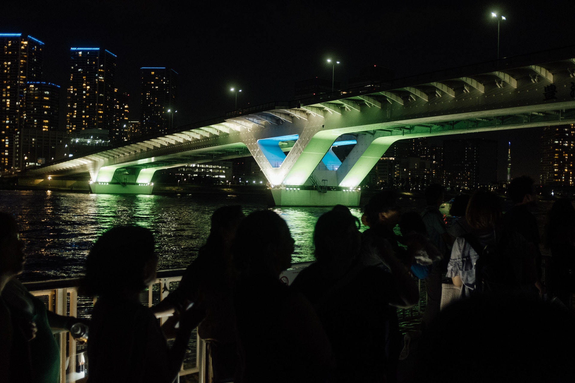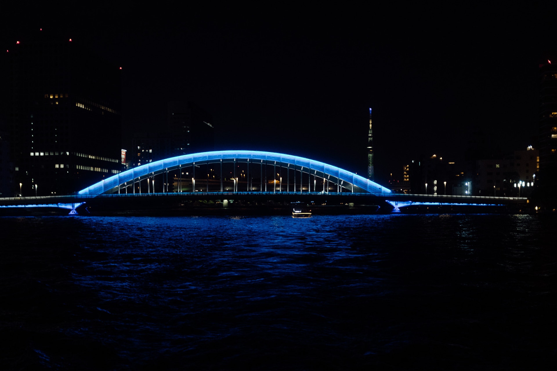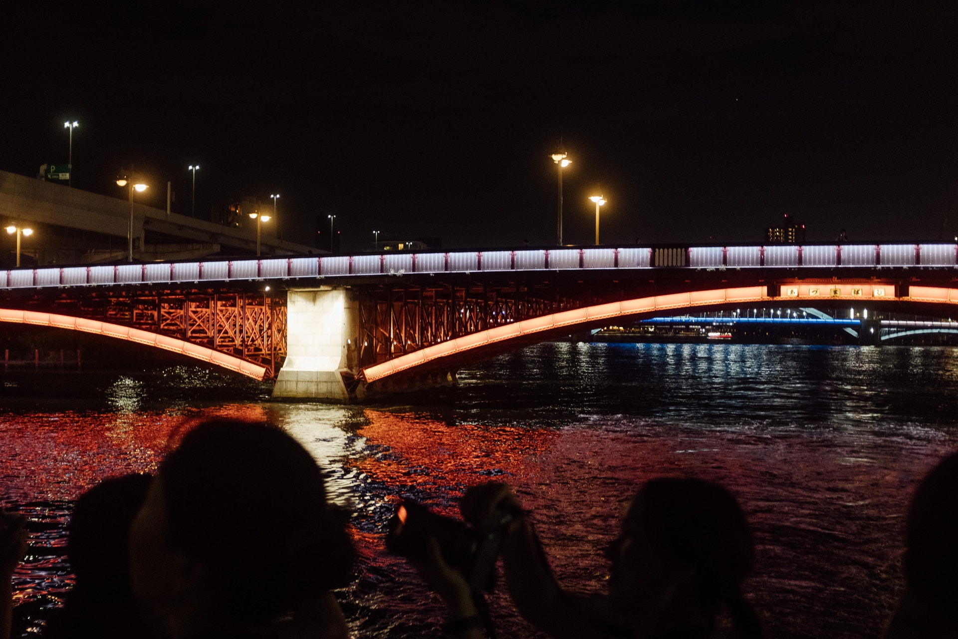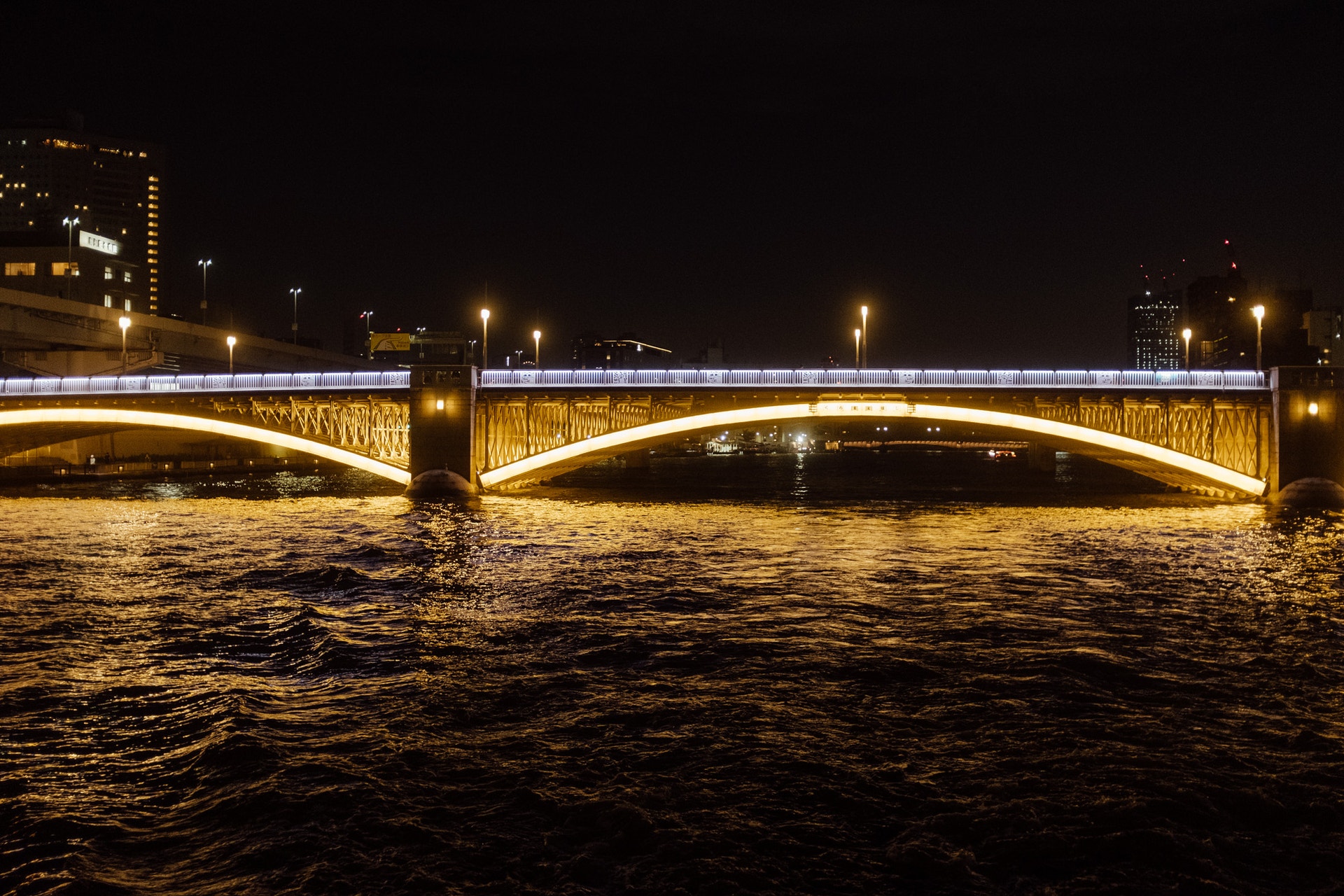 隅田川にはたくさんの橋がかかり、ほとんどをライトアップしています。