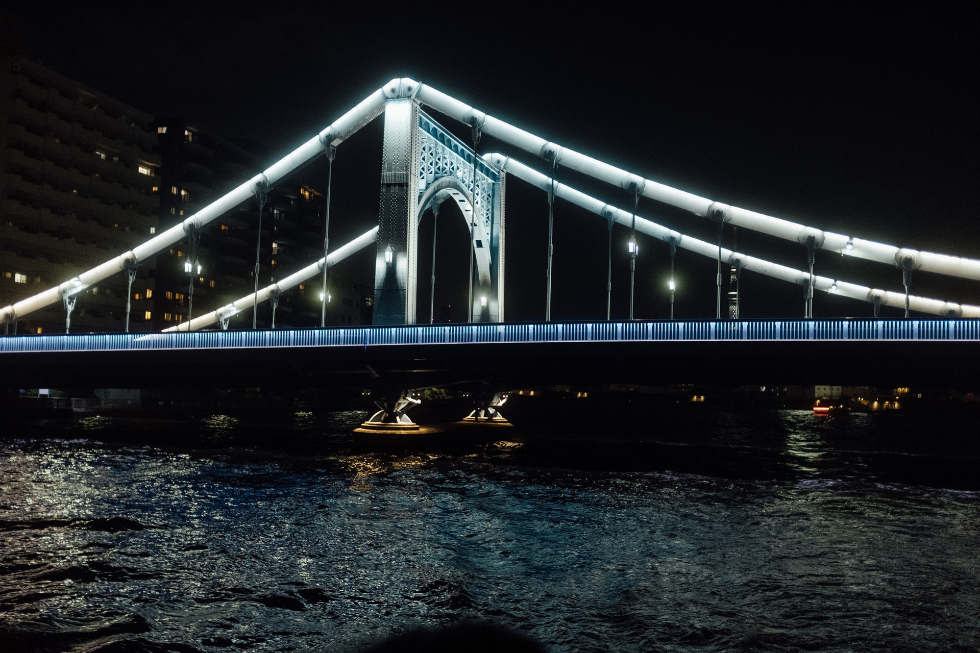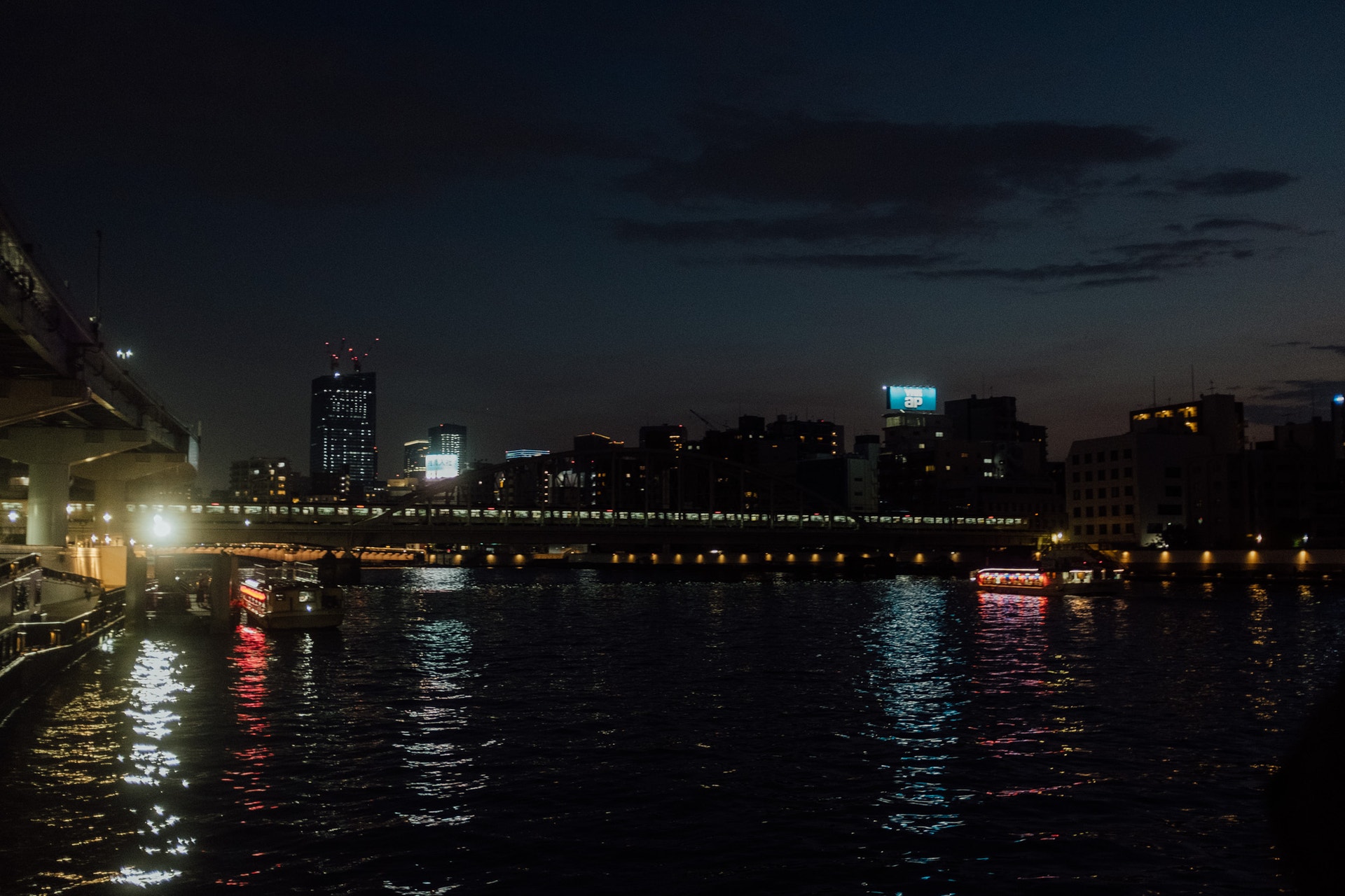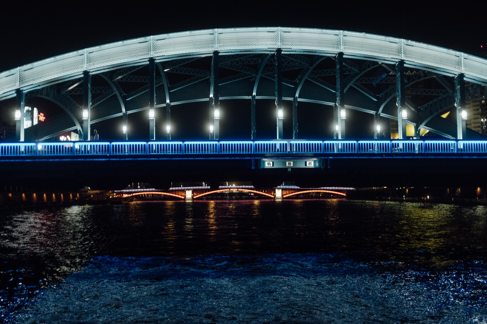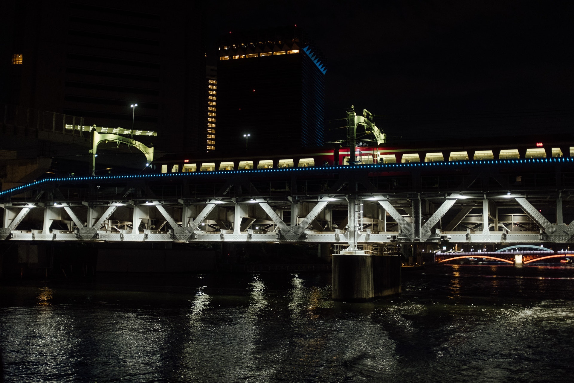 隅田川にはたくさんの橋がかかり、ほとんどをライトアップしています。