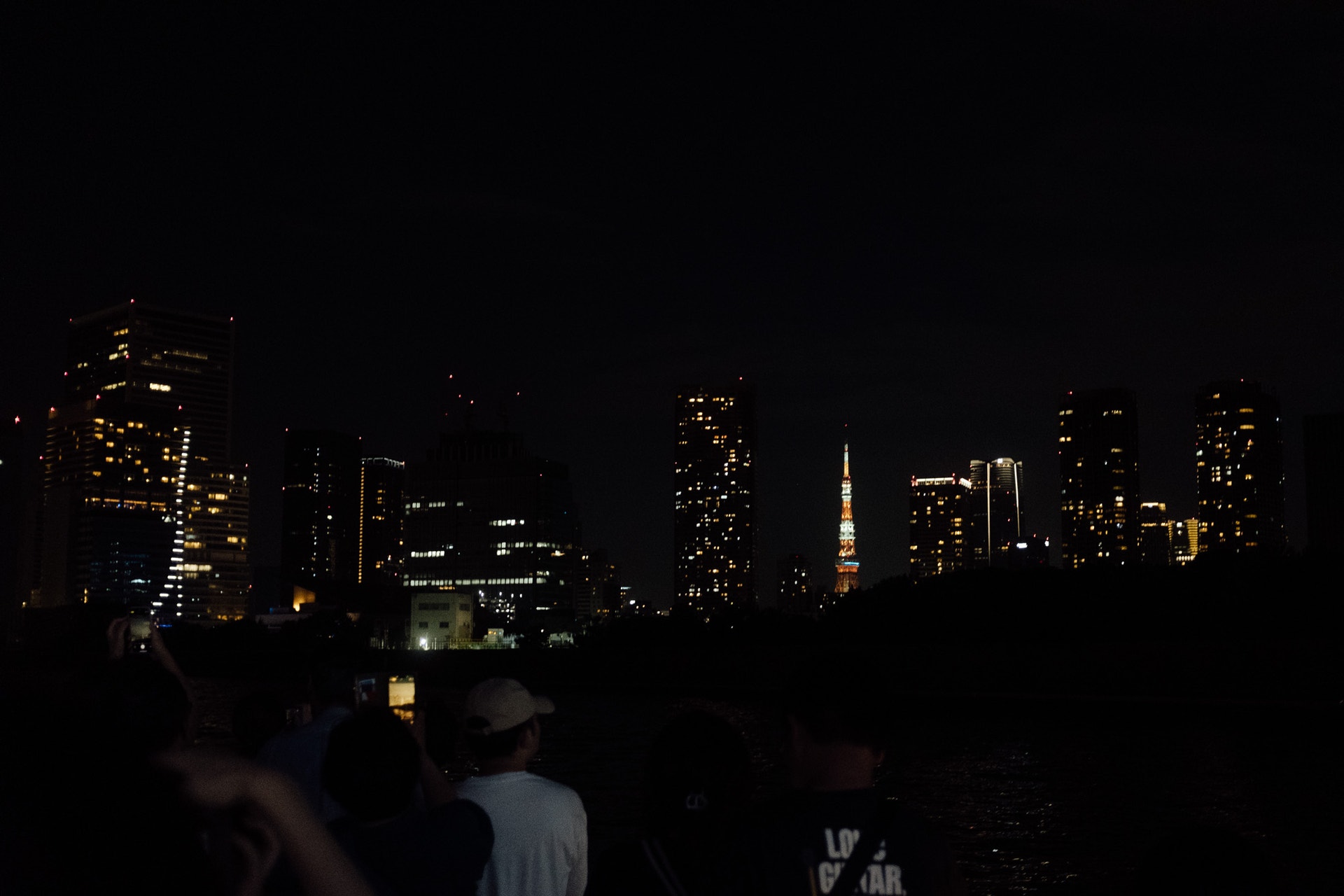 途中で東京タワーもビルの間から見ることができました。スカイツリーの明るいイルミネーションを見ると、東京タワーの照明はちょっと物足りなさを感じるかもしれませんが、それ自体が発光するスカイツリーと、照明でタワーを明るく照らす東京タワーで印象が変わるのでしょうね。