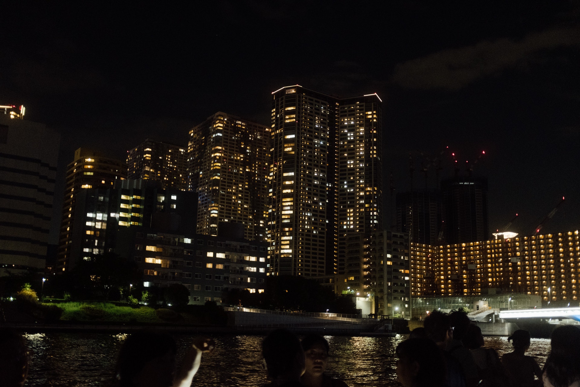 帰りは行きには通らなかった豊洲方面から。こちら側には今回一番低い橋を三連続でくぐるという体験をしました。ららぽーと豊洲の近くにあるアーバンゲートブリッジ付近で光るクレーンもあったりして、ここ、夜景楽しそうかも?って思いました。
