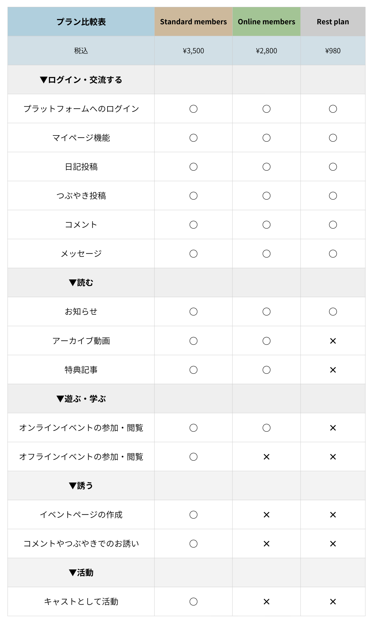 撮影会などリアルの活動は少しお休みして、オンラインでマイペースに活動したい方に向けた、オンライン活動限定のメンバーシッププランです。