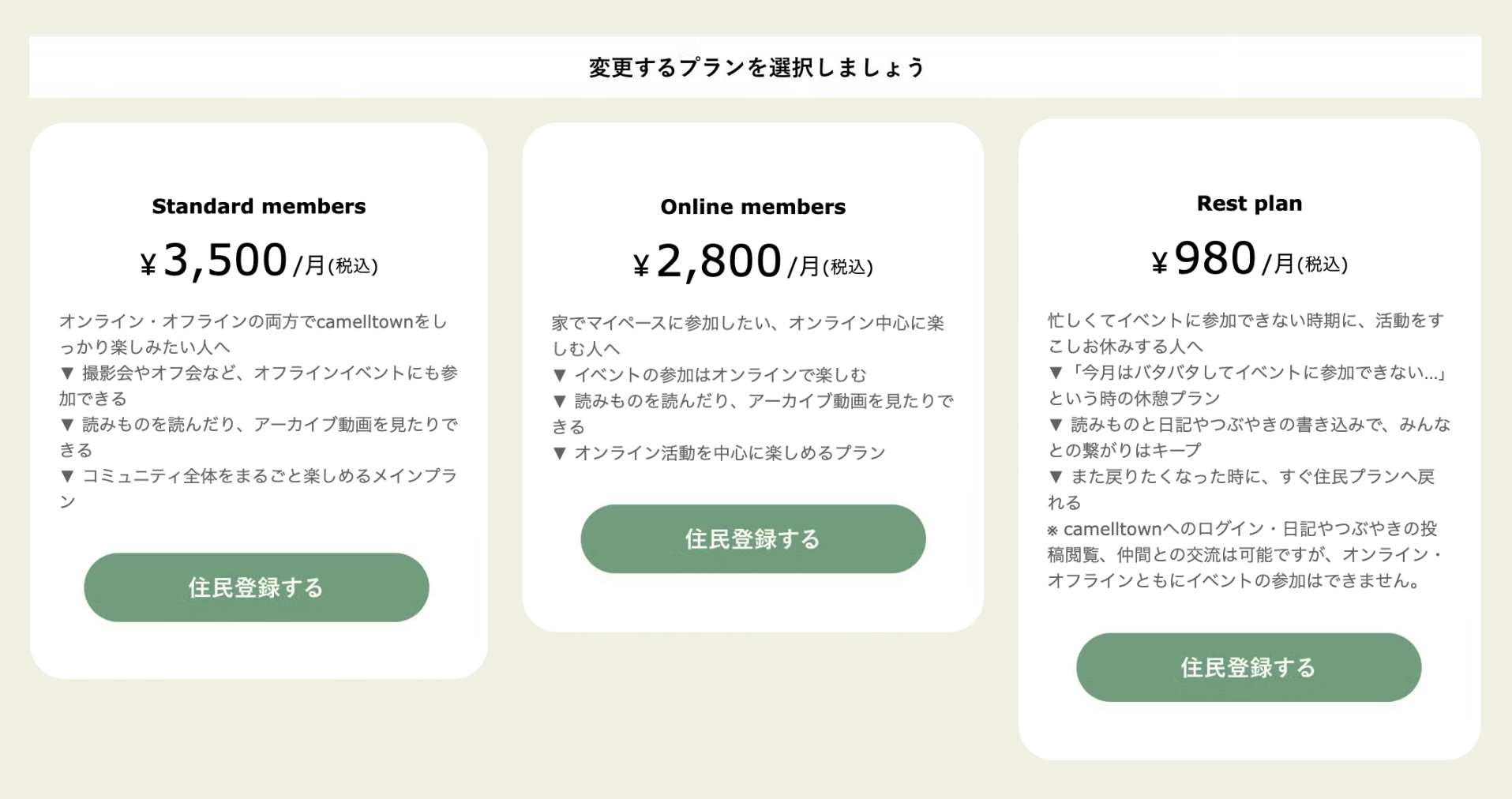 ⚠️ ご注意:アプリからはプラン変更はできませんので、WEBからcamelltownにログインして操作をお願いします。