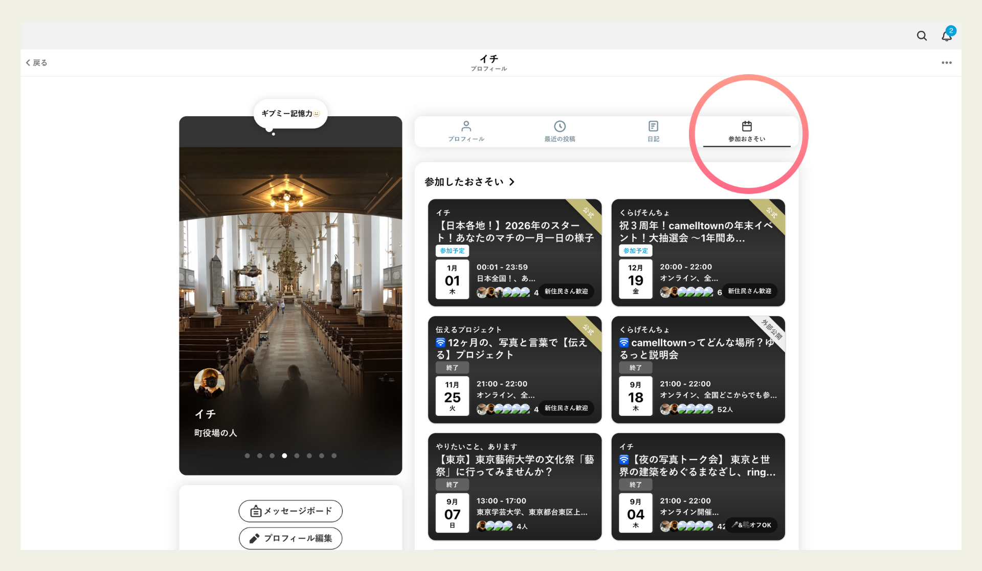 参加しているおさそいを確認したい場合はこちらから見ることができます。
