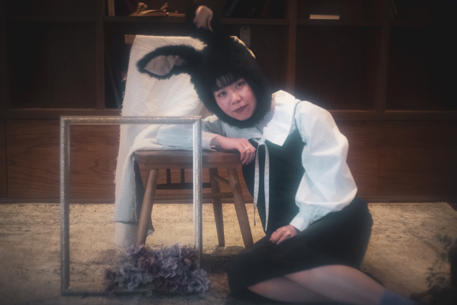 うさぎちゃんの帽子はさつきさんのもの! まいこさんのフォトブースに雰囲気ぴったりです(笑)!