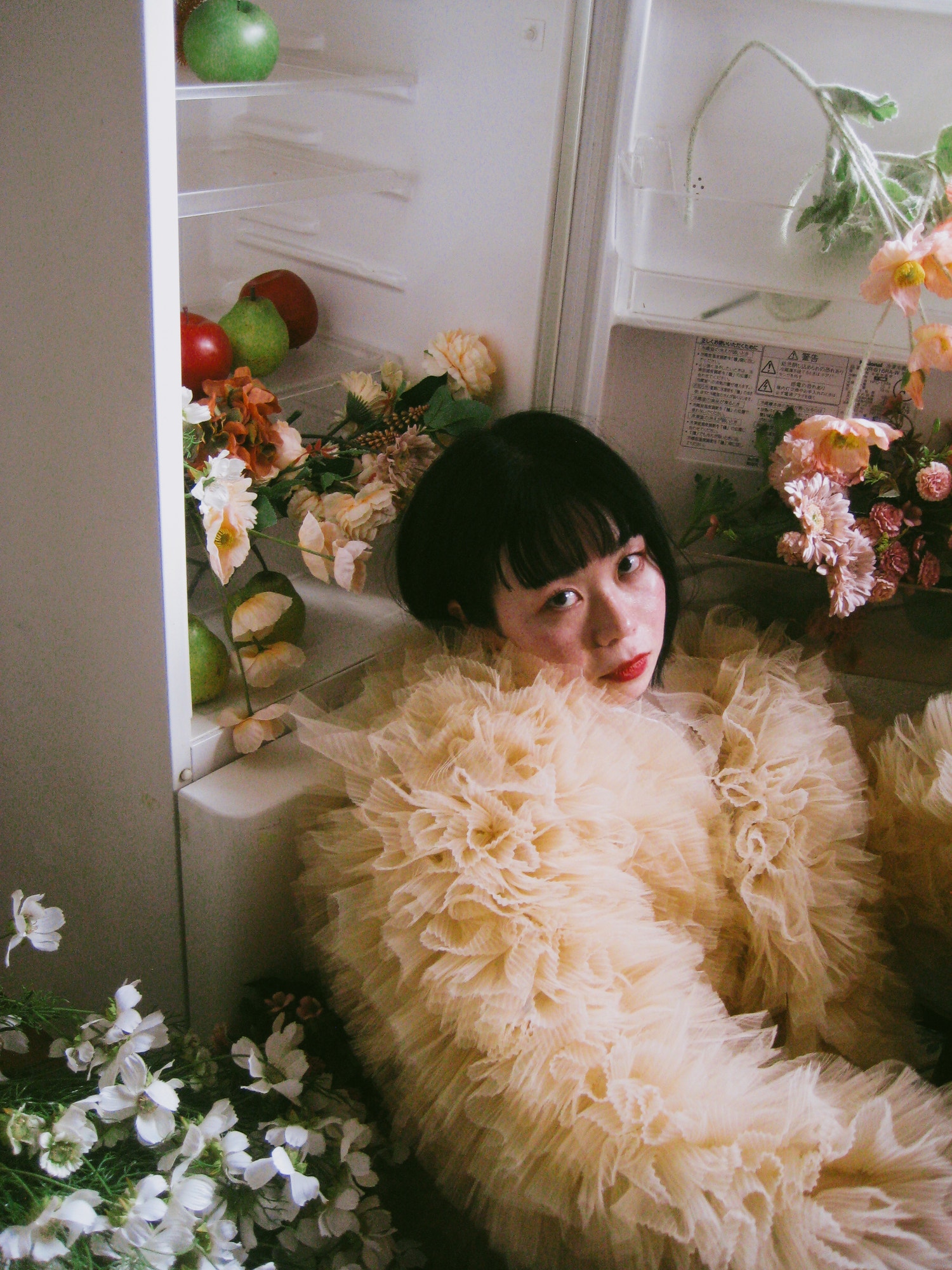 私は冷蔵庫から生まれてきた女神という謎設定にて、冷蔵庫周りを生かしたフォトブースを作ってみました!(笑)