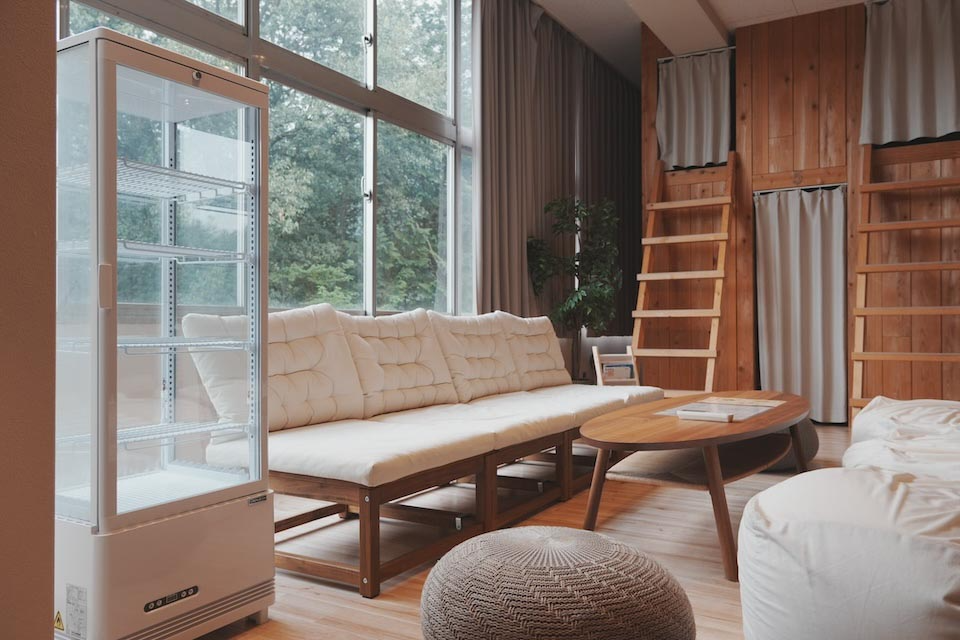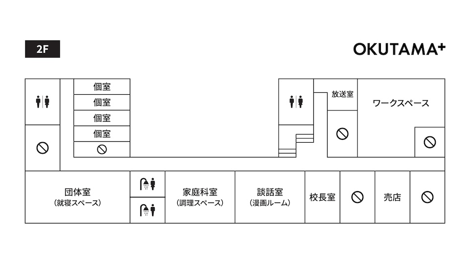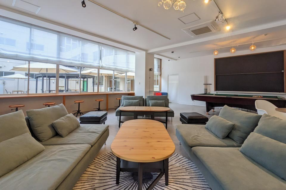 駐車場(20台)・Wi-Fi・ビジネス備品・ワークスペース・会議室・多目的スタジオ・ラウンジ・談話室・パティオ・宿泊室・シャワー・焚き火・卓球・ビリヤード
