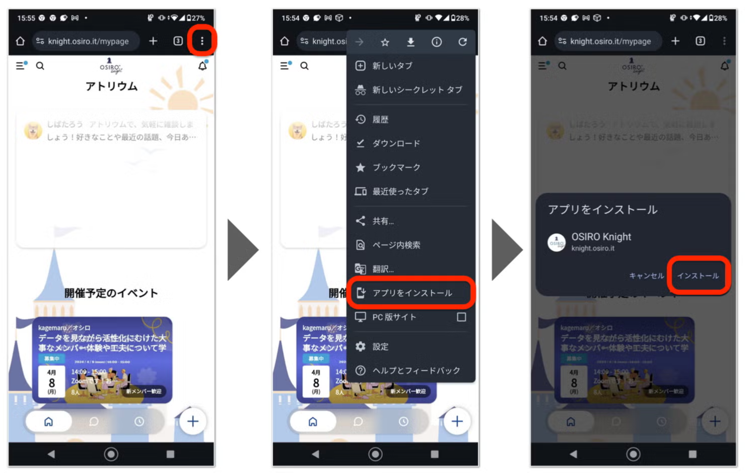 2. 三点リーダー>「アプリをインストール」>「インストール」